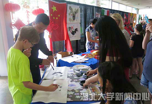 震撼的中国功夫、华丽的民族服饰、憨态可掬的国画大熊猫……美国孟菲斯大学校园及当地社区吹起了徐徐中国风。随着孔子学院日临近,湖北大学—孟菲斯大学孔子学院的“走进中国”系列活动正如火如荼地进行,为该校学生和当地居民奉上了丰富的中华文化大餐。