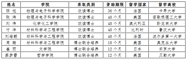 日前,国家留学基金委公布了2017年国家建设高水平大学公派研究生项目录取人员名单,我校哲学学院、文学院、材料科学与工程学院、化学化工学院、物理与电子科学学院的8名应届硕士毕业生和在读博士研究生获得公派出国项目资助,为我校历年来申报该项目所取得的最佳成绩,获批人数在省属高校中亦名列第一。