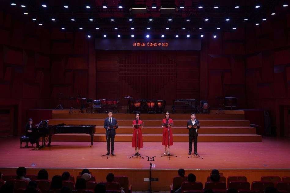 图为谢兆钧(中国台湾)、刘治江、王窦千千、胡雨瑄诗朗诵《盛世中国》