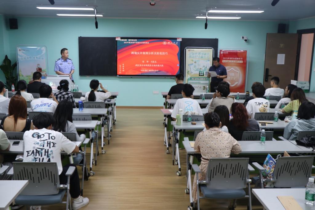 武汉市公安局武昌分局内保大队大队长杜华为参训学员讲解了跨境反诈案例分析及防范技巧,结合真实案例指导学员们如何应对境外电信诈骗、金融风险等各种安全隐患,如何通过中国驻外使领馆、各种渠道以及各类反诈APP来寻求保护和做好防范。