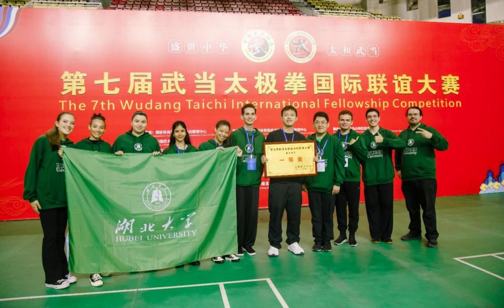 太极拳是中华武术瑰宝,也是中国传统文化的重要符号和对外交流的重要载体。我校国际学生参赛选手怀揣着对太极文化的热爱,在体育学院专业教师的悉心指导下,克服困难,利用课余时间刻苦训练,反复练习,力求完美。比赛时,10名学生动作整齐划一,行云流水,受到了裁判和现场观众的一致好评。经过激烈角逐,湖北大学巴西代表队获得集体太极(八法五步)项目一等奖。马飞龙还获得男子境外组CDE组武当其他传统拳术一等奖、男子境外组BC组武当其他传统器械二等奖。