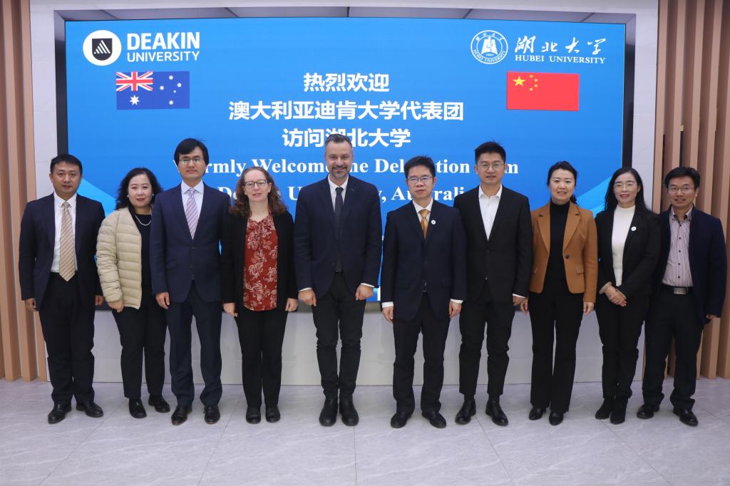 艾青松对Nick Birbilis一行来访表示热烈欢迎,并介绍了湖北大学发展和国际交流近况。他表示,迪肯大学是湖北大学最重要的国际合作伙伴之一。两校自2009年建立合作关系,先后开展学生联合培养、硕士联合指导、教师互访交流等合作项目,有效深化了合作友谊,提升了合作层次,促进了双方发展。湖北大学珍视与迪肯大学的友谊,希望以代表团此次来校访问交流为契机,进一步深化两校友好关系,进一步开展多形式、多层次、多领域的交流与合作。