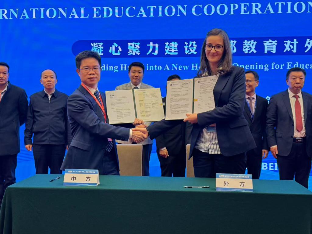 艾青松副校长在中国教育国际交流协会秘书处主任别晓竹、湖北省委统战部副部长邵志祥、湖北省教育厅副厅长周启红、印度尼西亚驻华大使馆教育文化参赞Yudil Chatim等全体嘉宾的见证下,代表湖北大学在《湖北大学和爱丁堡大学教育合作协议备忘录》上签字。
