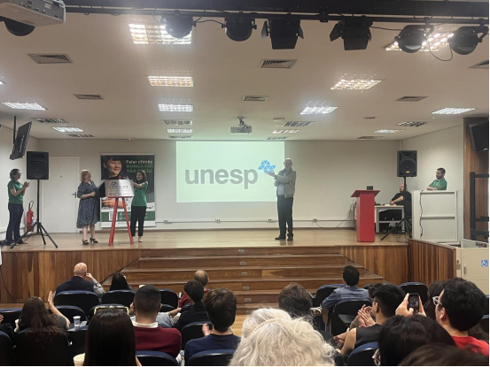 揭牌仪式上,外方院长保利诺教授阐释:“电影俱乐部的成立是2025国际中文日的‘时空礼物’——它让巴西观众在镜头推移间,触摸中国历史的温度,聆听当代中国的叙事角度。孔子学院不仅仅是中文学习的殿堂,更真正成为中巴文化交流的坚实桥梁,承载着两国文明互鉴的重要使命。未来,俱乐部将以影像为纽带,通过‘展映+学术+互动’三维模式,将中文教育由单纯的语言学习拓展至文明对话的深层维度,为巴西民众打开一扇沉浸式感知中华文化的全景视窗。”中方院长叶丹与圣保罗大学传播与艺术学院教授塞西莉娅·梅洛共同为俱乐部揭牌。