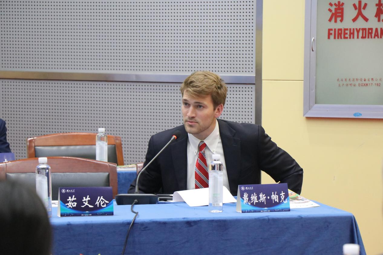 美国亚拉巴马州青年代表戴维斯·帕克(Davis Parker)在交流会上发言,分享了自己对中美青年交流与文化互鉴的思考。他表示,这是自己首次来到中国,此次交流让他深切感受到湖北大学师生的热情与友好,也对中国的文化与社会有了更深入的了解。他指出青年人应成为连接不同文化的桥梁,以开放的心态、包容的视野和真诚的交流,共同推动世界的理解与合作。他希望通过此次交流,能够与中国青年建立长久的友谊,也期待未来有更多青年携手合作,在学习与沟通中不断增进理解,共创更加美好的未来。