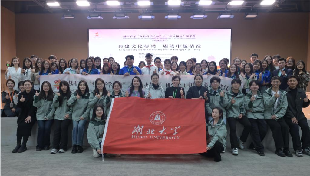 11月12日下午,越南青年“红色研学之旅”之“薪火相传”研学营到访湖北大学。越南胡志明市国家大学下属人文与社会科学大学和湖北大学的青年师生欢聚一堂,用深度对话赓续中越情谊,以文化体验传递时代和声。